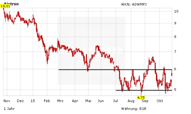 Die Aixtron-Aktie notiert dank der positiven Nachrichten deutlich im Plus. Zwischenzeitlich ist die mit einem Aufschlag von mehr als sieben Prozent an die TecDAX-Spitze geklettert. Auch wenn kurzfristig Kurse im Bereich von sechs Euro möglich sind, für eine nachhaltige Erholung dürfte es vorerst nicht reichen. Anleger sollten vorerst an der Seitenlinie bleiben.