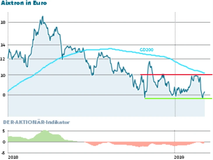 Die Investitionszurückhaltung der Kunden macht auch Aixtron zu schaffen. Die recht große Spannbreite der Prognose für 2019 zeigt, wie schwer der Vorstand des Anbieters von Beschichtungsanlagen für die Halbleiterindustrie nach dem Rekordjahr 2018 die kommende Entwicklung einschätzen kann. Nach dem Kursrutsch arbeitet die Aktie an ihrer Stabilisierung. Trading-orientierte Anleger legen sich auch die Lauer.