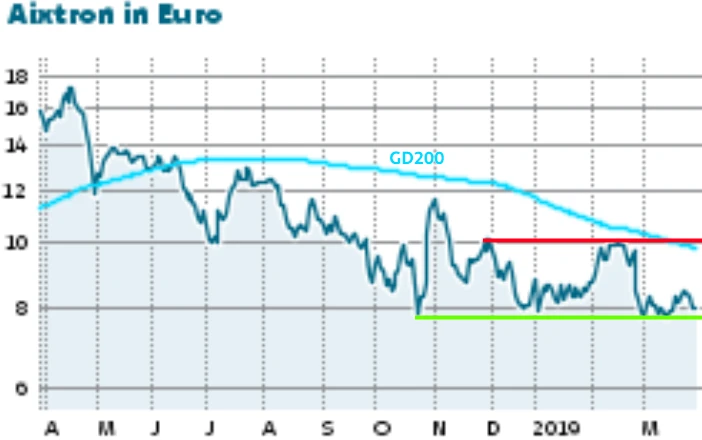 Der Auftragseingang liegt aktuell bei 303 Millionen Euro, soll im laufenden Jahr aber auf 220 bis 260 Millionen Euro fallen. Doch die Gesellschaft hat noch ein paar Trumpfkarten in der Hinterhand: Neben der Erschließung der Wachstumspotenziale im Bereich Leistungselektronik sorgen (im zweiten Halbjahr mögliche) Aufträge für neu entwickelte OLED-Anlagen für Fantasie. Damit bleibt die Hoffnung, dass die Investitionszurückhaltung der Kunden doch nur vorübergehender Natur ist.