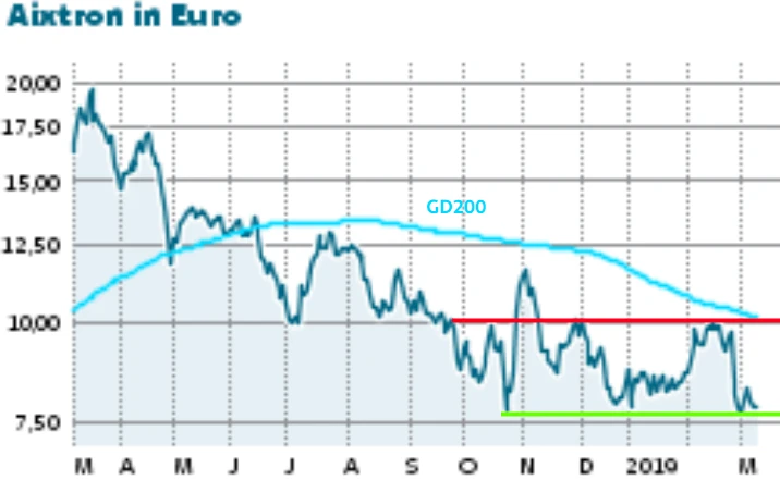 Vor dem Hintergrund der geopolitischen Krisenherde und der Sorge vor einer Abkühlung des weltweiten Wirtschaftswachstums fahren viele Halbleiterkonzerne ihre Investitionen runter. Diese Zurückhaltung der Kunden macht auch Aixtron zu schaffen. Die recht große Spannbreite der Prognose für 2019 zeigt, wie schwer der Vorstand des Anbieters von Beschichtungsanlagen für die Halbleiterindustrie nach dem Rekordjahr 2018 die kommende Entwicklung einschätzen kann. Um so überraschender ist die Zurückhaltung auf Seiten der Leerverkäufer.