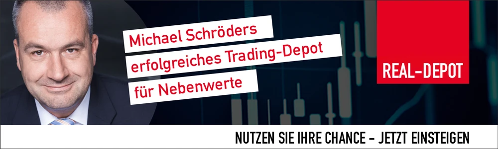 Das Real-Depot spürt noch unentdeckte Trading-Chancen abseits der großen DAX-Bühne auf. Der Fokus liegt auf kurzfristigen Investments, bei stabilen Trends werden die Werte aber auch länger gehalten. Für zusätzliches Renditepotenzial sorgt der gezielte Einsatz von Hebelprodukten. Transparenz ist hierbei sehr wichtig: Der Börsendienst berücksichtigt sogar die Ordergebühren. Sie wollen auch reale Gewinne erzielen? Dann schauen Sie sich das aktuelle Kennenlernangebot an. Der nächste potenzielle Highflyer steht bereits in den Startlöchern.