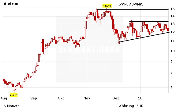 Aixtron befindet sich auf Turnaround-Kurs. Im laufenden Jahr will es die Restrukturierungsmaßnahmen fortsetzen und aktiv nach Partnerschaften suchen, um am Ende auch unterm Strich wieder in die Gewinnzone zurückkehren. Den anstehenden Turnaround hat die Aktie im abgelaufenen Jahr mit einem satten Kursplus von in der Spitze mehr als 370 Prozent honoriert.