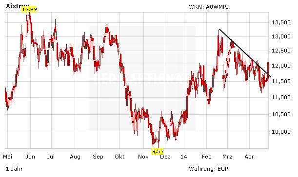 Auch wenn das Management für das Gesamtjahr weiterhin mit roten Zahlen rechnet, gibt es einen Lichtblick für die Aktionäre. Im zweiten Halbjahr soll laut Management eine neue Anlagengeneration eingeführt werden. Der Auftragseingang in den ersten drei Monaten ist zudem im Vergleich zum Vorjahr um gut ein Viertel auf 37,7 Millionen Euro. In den Büchern standen insgesamt aber nur noch Bestellungen für 64,2 Millionen Euro - ein Rückgang von 18 Prozent im Jahresvergleich.