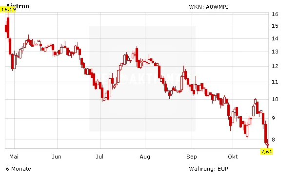 Die Aixtron-Aktie ist im schwachen Marktumfeld wieder auf die Unterstützung bei acht Euro zurückgefallen. Hier sollte der Kurs nun aber erneut nach oben drehen, denn neben einer strategisch guten Joint-Venture-Vereinbarung hat sich die Deutsche Bank zuversichtlich für die anstehenden Zahlen geäußert.