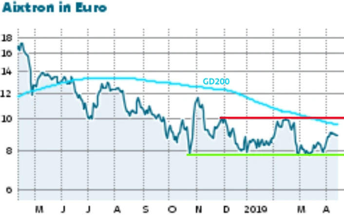 Aixtron leidet derzeit wie fast alle Konzerne mit Bezug zur Halbleiterbranche unter dem viel zitierten Nachfragerückgang. Der Auftragseingang lag zum Jahreswechsel bei 303 Millionen Euro. Er soll im laufenden Jahr auf 220 bis 260 Millionen Euro fallen. Diese Tendenz dürfte mit den Zahlen zum ersten Quartal am 30. April bestätigt werden. Doch die Gesellschaft hat dem Vernehmen nach noch berechtigte Chancen, bei einigen neuen Projekten zum Zug zu kommen.