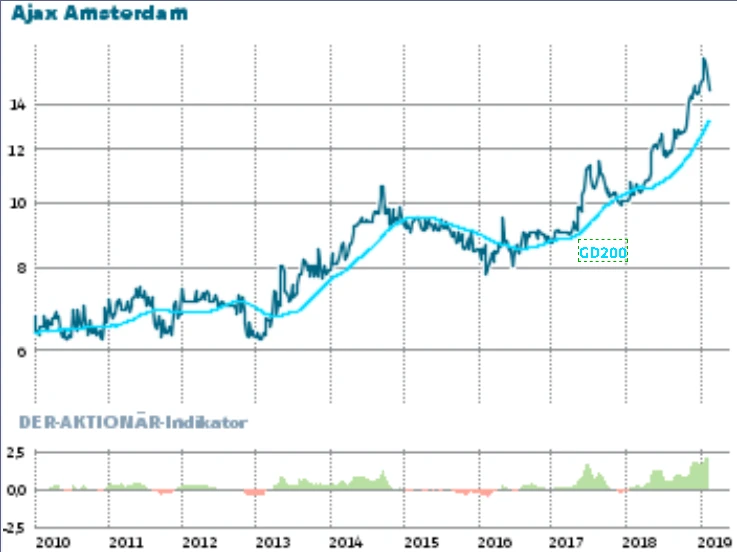 Charttechnisch bleibt die Aktie spannend. Nachdem das Papier ein neues Allzeithoch erreicht hatte, ging es bis auf 14,85 Euro nach unten. Schafft Ajax die Sensation gegen Real Madrid und werden Angebote für de Ligt und Kasper Dollberg konkret, wird die Aktie Richtung 20,00 Euro marschieren. Spekulativ!