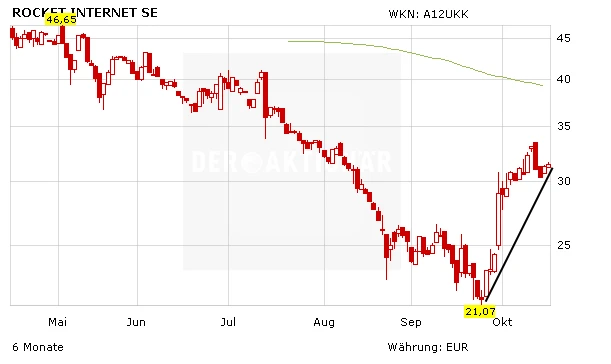 Wer der Kaufempfehlung des AKTIONÄR gefolgt war, konnte bisher bereits eine Rendite von 30 Prozent einfahren. Doch die Rallye ist noch nicht zu Ende. DER AKTIONÄR sieht weiterhin Potenzial für die Rocket-Internet-Aktie und hält den Wert deshalb in seinem Aktien-Musterdepot. Das Kursziel liegt bei 42 Euro knapp 35 Prozent oberhalb des aktuellen Niveaus. Anleger lassen die Gewinne laufen.