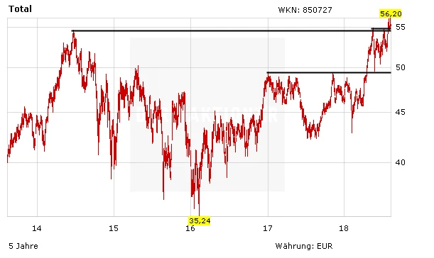 Rein charttechnisch betrachtet, fällt das Ergebnis allerdings anders aus: Denn hier hat die Aktie von Total aktuell die Nase vorne. So glückte dem Kurs kürzlich der Ausbruch über einige wichtige Widerstände – während sich die BP-Anteile noch in der Konsolidierungsphase befinden.