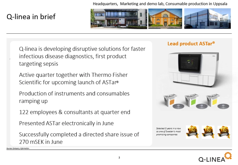 Im Aktienreport hieß es: "Der Diagnostik-Sektor ist ständig in Bewegung. Gut möglich, dass auch Q-linea aus Schweden bereits in das Visier von Roche, Thermo Fisher Scientific oder anderen Branchengrößen gerückt ist. Denn die Schweden treffen mit ihren Produkten den Nerv der Zeit." Zwar ist es bis dato nicht zu einem Übernahmeversuch gekommen. Allerdings hat Thermo Fisher bei Q-linea angeklopft und für das Diagnostik-Gerät ASTar eine Vertriebsvereinbarung geschlossen.