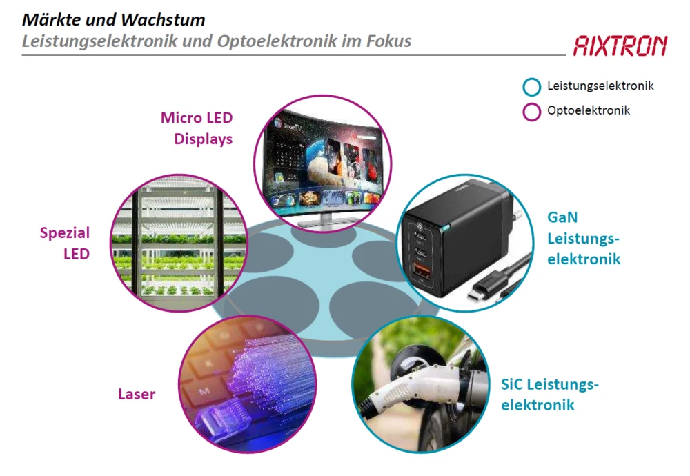 AKTIONÄR-Leser wissen: Aixtron ist ein Profiteur von Trends wie Energieeffizienz, Alternative Energien, Digitalisierung und Elektromobilität. Dabei kommt dem Unternehmen der wachsende Einsatz sogenannter Verbindungshalbleiter zugute. Aixtron stellt Anlagen her, die hauchdünne Schichten aus zwei Elementen auf spezielle Träger auftragen - Verbindungshalbleiter entstehen. Diese ermöglichen eine effizientere Energieleitung und halten hohe Temperaturen aus, was unter anderem für Schnellladetechnik große Vorteile bietet. Aber auch Anlagen im Bereich Optoelektronik sind gefragt, angesichts des Wachstums von 3D-Sensorik.