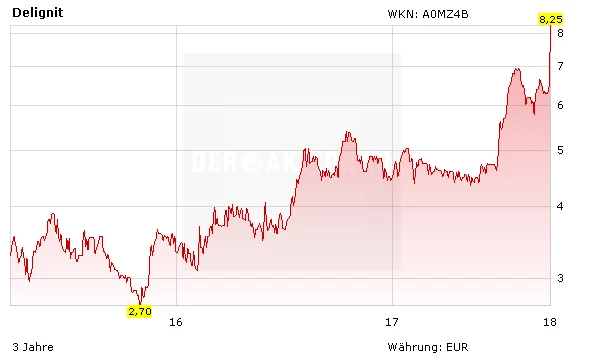 Auch wenn die Gesellschaft zum Jahresende aufgrund diverser Umbaumaßnahmen und Serienanläufen bei den Endkunden etwas an Wachstumsgeschwindigkeit verloren hat, kann sich das Zahlenwerk durchaus sehen lassen. Der Umsatz verbesserte sich 2017 um 8,5 Prozent auf 52,7 Millionen Euro – ein neuer Rekord in der Unternehmensgeschichte. Insbesondere in Sachen Profitabilität ist Delignit gut in der Spur. Nach vorläufigen, ungeprüften Zahlen verbesserte sich das Ergebnis vor Zinsen, Steuern und Abschreibungen, EBITDA, um 31 Prozent auf gut 4,9 Millionen Euro. Dies entspricht einer EBITDA-Marge von 9,2 Prozent nach 7,5 Prozent im Vorjahr, womit die Erwartung des Vorstands (Spanne von 7,5 bis 8,3 Prozent) übertroffen wurde. Das Konzernergebnis stieg um 33,1 Prozent auf 1,9 Millionen Euro. Das Ergebnis pro Aktie lag damit bei 0,24 Euro nach 0,18 Euro im Vorjahr.