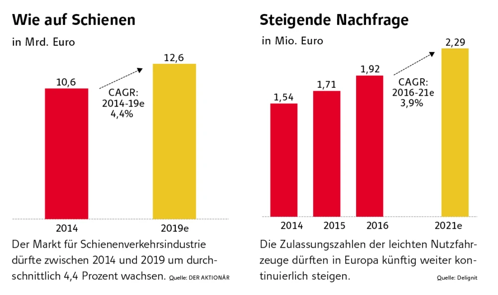 „Was uns besonders freut, ist, dass wir im Automotive-Bereich durch unsere Strategie ‚mehr Umsatz pro Fahrzeug‘ auch bei den Serienlieferverträgen eine Ausweitung der Lieferumfänge durch Produktneuentwicklungen sehen und wir uns zudem auch international stärker positionieren konnten“, so Delignit-Vorstand Markus Büscher gegenüber dem AKTIONÄR. In den letzten Monaten hat die Gesellschaft mehrere langfristige Millionenaufträge erhalten, die für eine hohe Visibilität sorgen. Auch im Bereich „Schiene“ haben sich die Ostwestfalen durch neue Verträge als internationaler Partner erfolgreich positioniert. „Ich möchte hier keine einzelnen Verträge besonders hervorheben, allerdings darauf verweisen, dass die OEM-Serienlieferverträge, die wir in 2016 abschließen konnten, mit ihrem Volumen und Laufzeit sicher einen Meilenstein darstellen“, sagt der Firmenlenker.