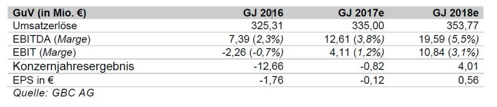 Für das laufende Transformationsjahr rechnet Meyer mit einem Umsatz zwischen 330 und 350 Millionen Euro – bei einer EBITDA-Marge im Bereich von vier bis fünf Prozent. Die Strukturkosten für den Konzernumbau werden dabei wahrscheinlich noch einmal mit rund 2,5 Millionen Euro belasten. Damit dürften am Ende unter dem Strich auch für 2017 rote Zahlen stehen. Künftig steht mehr und mehr die Verbesserung der Rentabilität im Vordergrund. „Auf der Kostenseite wurden entsprechende Effizienzsteigerungsmaßnahmen eingeleitet. Auf der Umsatzseite wurde der Fokus verstärkt auf margenstärkere Aufträge gelegt. Zudem ist das Unternehmen bestrebt, durch die verstärkte Verknüpfung der einzelnen Gesellschaften zusätzliche Synergien zu erzielen“, sagt GBC-Mann Goldmann.