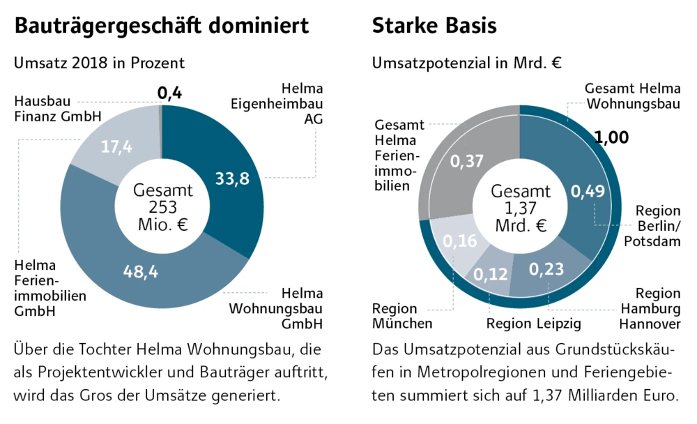 Auch der mittelfristige Ausblick macht Lust auf mehr: Denn der Bauträgerbereich weist bereits einen umfangreichen Bestand an Baugrundstücken auf, auf denen insgesamt über 3.300 Einheiten mit einem Umsatzpotenzial von mehr als 1,35 Milliarden Euro errichtet werden können. „Davon wird, ein einigermaßen stabiles Marktumfeld vorausgesetzt, ein Großteil innerhalb der nächsten fünf Jahre realisiert werden können“, so Janssen. Daraus resultiert in diesem Segment ein durchschnittliches Umsatzvolumen von rund 270 Millionen Euro pro Jahr. Zudem soll das Baudienstleistungsgeschäft (individuelles Einfamilienhaus auf dem Grundstück des Kunden) mittelfristig weitere 100 Millionen Euro jährlich zum Umsatz beitragen. Helma erwartet daher mittelfristig einen Gruppenumsatz von deutlich über 300 Millionen Euro pro Jahr auf einem hohen Profitabilitätsniveau.