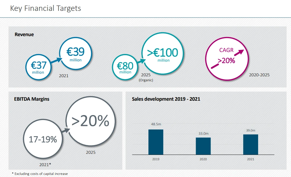 Die Ende Januar veröffentlichte Strategie „IBU 2025“zeigt: IBU-tec will in eine ganz neue Dimension in Bezug auf Umsatz und Ergebnis aufsteigen. Die Gesellschaft erwartet in den kommenden Jahren ein Wachstum von durchschnittlich 20 bis 25 Prozent pro Jahr. Für das Geschäftsjahr 2025 wird mit Umsätzen von 80 bis über 100 Millionen Euro geplant, bei einer Steigerung der EBITDA-Marge auf mehr als 20 Prozent. Zum Vergleich: Im laufenden Jahr wird mit einem Umsatz von 37 bis 39 Millionen Euro (Vorjahr: 33 Millionen Euro) und einer EBITDA-Marge von 17 bis 19 Prozent gerechnet.