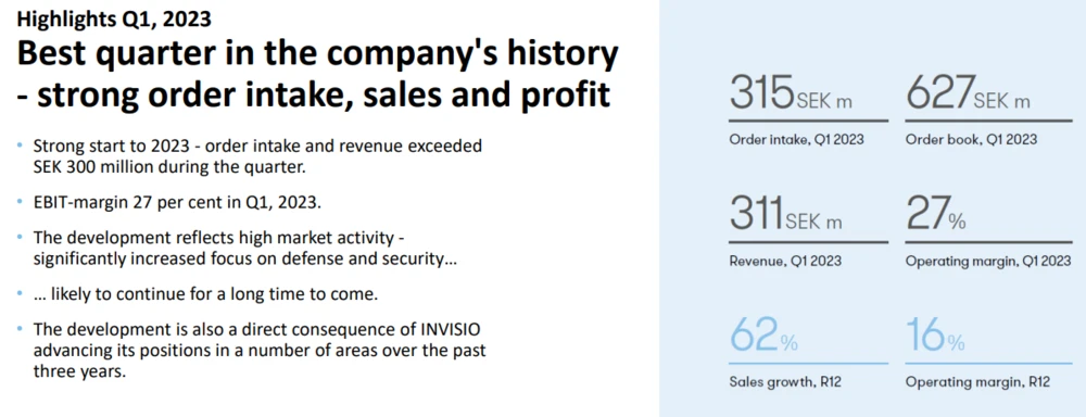 Wachstum verspricht sich Invisio unter anderem durch sein Intercom-System, welches im Jahr 2022 zu ersten nennenswerten Aufträgen geführt hat. Dabei handelt es sich laut Unternehmensangaben um ein kleines und leichtes System, das eine einfache und effektive interne Kommunikation in Fahrzeugen, Booten und Hubschraubern ermögliche.