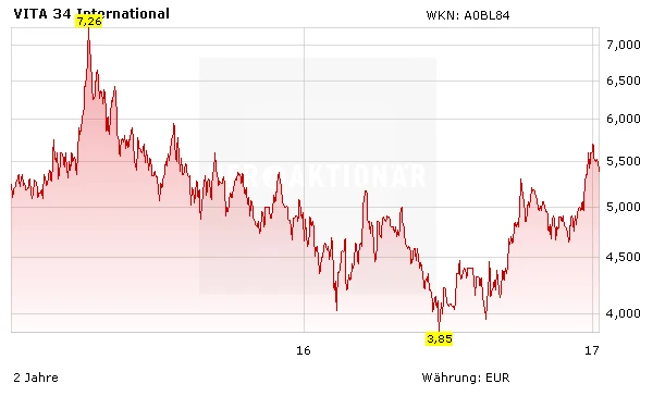 Die Vita 34 AG ist ein gesundes und profitables Unternehmen, das in einem der Zukunftsmärkte schon heute sehr erfolgreich ist und dessen Aktie durch die Profitabilität und Cashflow-Stärke ein echter Dividendentitel ist. Die Marktkapitalisierung wird sich infolge des erwarteten organischen und anorganischen Wachstums sicherlich weiter erhöhen. Zudem streben wir eine Steigerung des Bekanntheitsgrades durch die Ausweitung und Intensivierung unserer IR-Maßnahmen an, insbesondere auch durch gezielte Direktansprache von Investoren, zu denen die Vita34-Aktie passt. Dabei fokussieren wir uns auf Anleger, die langfristig investieren und damit an der stetigen Entwicklung der Vita 34 Aktie und der kontinuierlichen Dividendenpolitik teilhaben.