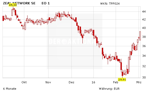 Die Aktie von Zeal Network befindet sich im Aufwind. Angefeuert von einem positiven Newsflow dürfte der AKTIONÄR-Musterdepotwert nun auch die 40-Euro-Marke überwinden. Das Plus seit Depotaufnahme am 18. Februar beträgt mittlerweile rund 20 Prozent.