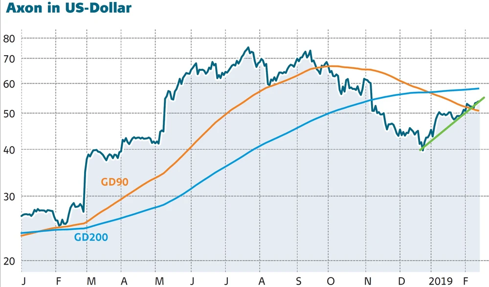 DER AKTIONÄR hat Axon in Ausgabe 7/2019 zum Kauf empfohlen. Da der Titel noch kaum angezogen hat, lohnt sich auf jeden Fall noch der Einstieg für spekulativ orientierte Anleger.