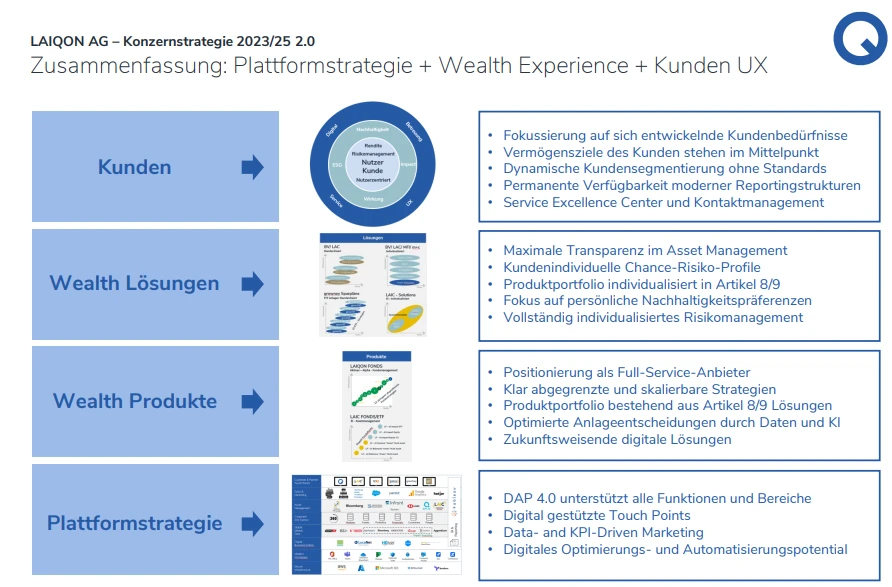 Eine große. Was wir unter unserem zukünftigen neuen Markennamen LAIQON ab Anfang Januar unseren Kunden anbieten, geht weit über den bisherigen Markenauftritt hinaus. In diesem Jahr können wir unseren Kunden aufgrund unser aufgebauten Plattformstrategie aktuell über 50 Wealth Produkte und Lösungen für unterschiedlichste Kundengruppen anbieten. Diese werden sowohl von unserem Portfoliomanagement- und Vermögensverwaltungsteams-Teams als auch auf Basis künstlicher Intelligenz gesteuert. Unser bisheriger Name Lloyd Fonds repräsentiert dieses Angebot nicht genügend. Zudem bringen wir mit unserem neuen Namen auch zum Ausdruck, dass unsere breite Wachstumsstrategie konsequent voranschreitet.