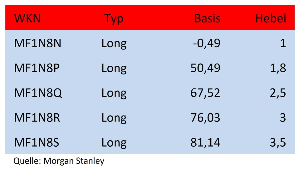 Die Mitglieder des Index machen dem Namen alle Ehre. Mit den folgenden Zertifikaten lässt sich die Wertentwicklung des Titan 20 Index komfortabel abbilden – mit Hebelmöglichkeit von 1 bis 3,5.
