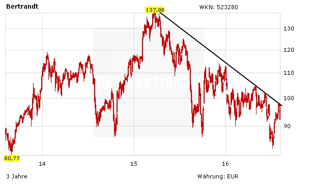 Bertrandt selbst sieht aufgrund der guten Marktbedingungen weiterhin unternehmerische Perspektiven mit einem kurz- bis mittelfristigen Umsatzwachstum von sieben bis zehn Prozent sowie einem operativen Ergebnis zwischen acht und 10,5 Prozent vom Umsatz pro Jahr. Bertrandt ist stark aufgestellt und profitiert von vielen Megatrends im Automobilbereich. Der Gezeitenwechsel bei VW dürfte die Auftragsbücher kräftig füllen. Die verbesserte Geschäftsdynamik wird in den nächsten Quartalsberichten sichtbar. Der jüngste Rücksetzer bietet bei der im Peergroup-Vergleich günstigen Aktie daher eine günstige Gelegenheit, das Depot etwas mobiler aufzustellen.