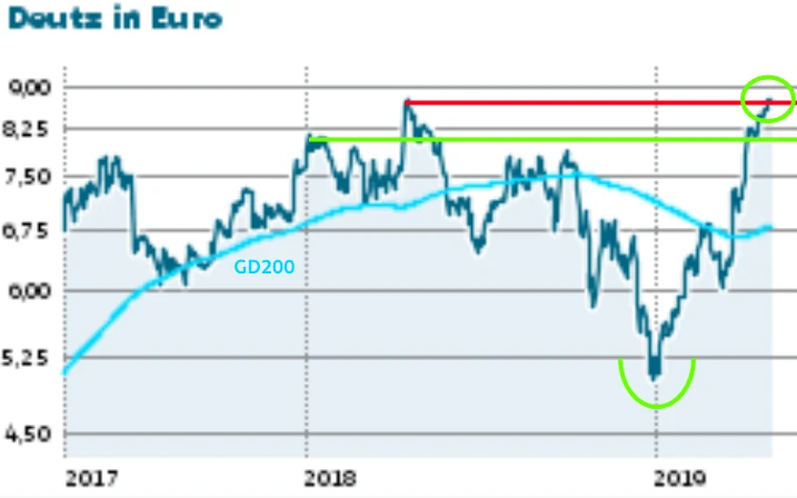 Deutz ist im abgelaufenen Jahr nach einer mehrjährigen Durststrecke die Rückkehr auf den Wachstumspfad gelungen. Der Motorenhersteller hat auch einen guten Start ins Jahr 2019 erwischt. Die Investoren greifen beherzt zu. Die Kursrallye geht in die nächste Runde. Mit dem Sprung über den horizontalen Widerstand bei 8,60 Euro wurde ein Kaufsignal generiert.