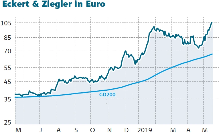 Der Jahresstart von Eckert & Ziegler kann sich sehen lassen. Sowohl operativ als auch in Sachen Kursentwicklung kann der Spezialist für Strahlen- und Medizintechnik überzeugen. Der Gewinn wurde in den ersten drei Monaten 2019 um über 60 Prozent gesteigert. Die Aktie legte seit dem Jahresstart mehr als 75 Prozent zu. Für beide Kennzahlen heißt es: Tendenz steigend!
