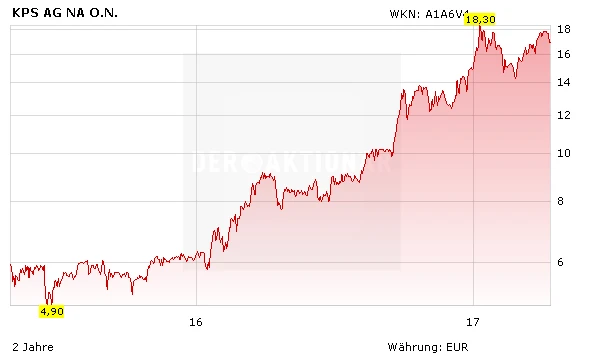 KPS unterstützt Kunden aus Handel und Wirtschaft, neue Strategien und Prozesse schneller einzuführen und die digitale Transformation voranzutreiben. Dabei befinden sich die Beratungsprofis selbst auf einem dynamischen Wachstumspfad. KPS ist in einem Wachstumsmarkt führend unterwegs. Immer mehr Unternehmen nehmen ihre Digitalisierung in Angriff – und setzen dabei auf Lösungen der Münchner. Neben neuen Beratungsverträgen sorgt das Service- und Lizenzgeschäft für nachhaltige Erlösbeiträge. Bei zweistelligem Umsatzwachstum dürften die Marge und damit auch der Gewinn kontinuierlich steigen. Mit einem 2017er-KGV von 27 ist die Aktie zwar kein Schnäppchen mehr. Angesichts der aussichtsreichen Perspektiven ist ein Ende des Aufwärtstrends trotzdem nicht in Sicht. Im Gegenteil: Das nächste Kaufsignal bei 18 Euro dürfte nicht mehr lange auf sich warten lassen!