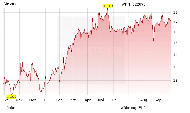 Das Jahr 2015 stellte sich bisher entgegen den Erwartungen als schwieriges und anspruchsvolles Börsenjahr heraus. So mussten die internationalen Aktienindizes in den vergangen Wochen und Monaten deutlich Federn lassen. Im Gegensatz hierzu besticht Nexus durch eine enorme Relative Stärke und verharrt eisern in der Nähe seines Allzeithochs. Gelingt demnächst der Ausbruch über den Widerstandsbereich zwischen 16,00 und 18,15 Euro, könnten sehr schnell Notierungen oberhalb der 20-Euro-Marke erreicht werden.