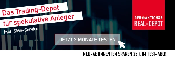 Hinweis nach §34 WPHG zur Begründung möglicher Interessenkonflikte: Aktien oder Derivate, die in diesem Artikel besprochen / genannt werden, befinden sich im "Real-Depot" von DER AKTIONÄR.