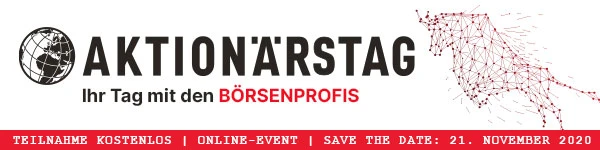 Fest steht: Der Aufschwung, der 2020 die Börse bestimmt hat, ist noch nicht vorüber. Und genau hier liegt jetzt Ihre Chance. Denn Anleger können von dieser Entwicklung weiterhin profitieren – schließlich hat die Erfolgsreise für viele Unternehmen 2020 gerade erst angefangen und wird 2021 so richtig Fahrt aufnehmen. Mit dem geballten Know-how von DER AKTIONÄR können Sie mit Amazon, Tesla, Nel und Co Ihre persönliche Erfolgsgeschichte schreiben. Beim AKTIONÄRSTAG am 21. November 2020 zeigen Ihnen unsere Experten, wie Sie Chancen an der Börse bestmöglich nutzen, und informieren Sie zu den aktuellen Themen, die die Börsen weltweit bewegen.