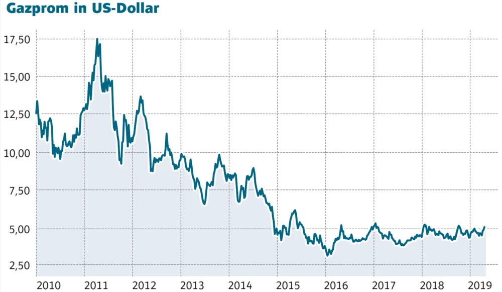 Eine derart niedrige Bewertung gibt es an der Börse sonst meistens nur bei Unternehmen, die rote Zahlen schrieben. Doch davon ist Gazprom weit entfernt: Im laufenden Jahr dürfte ein Nettogewinn von 21 Milliarden Dollar erzielt werden. Auch für die kommenden Jahre rechnen Analysten mit Überschüssen von mehr als 20 Milliarden Dollar.