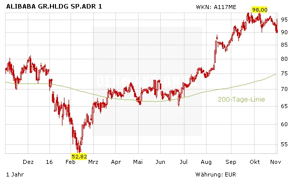 Auch im schwierigen Umfeld liefert Alibabas Kerngeschäft starke Zahlen. Zudem könnte das Investment in Cloud-Computing bald profitabel werden. Der Aktionär empfiehlt Alibaba zum Kauf und setzt das Kursziel auf 110 Euro.