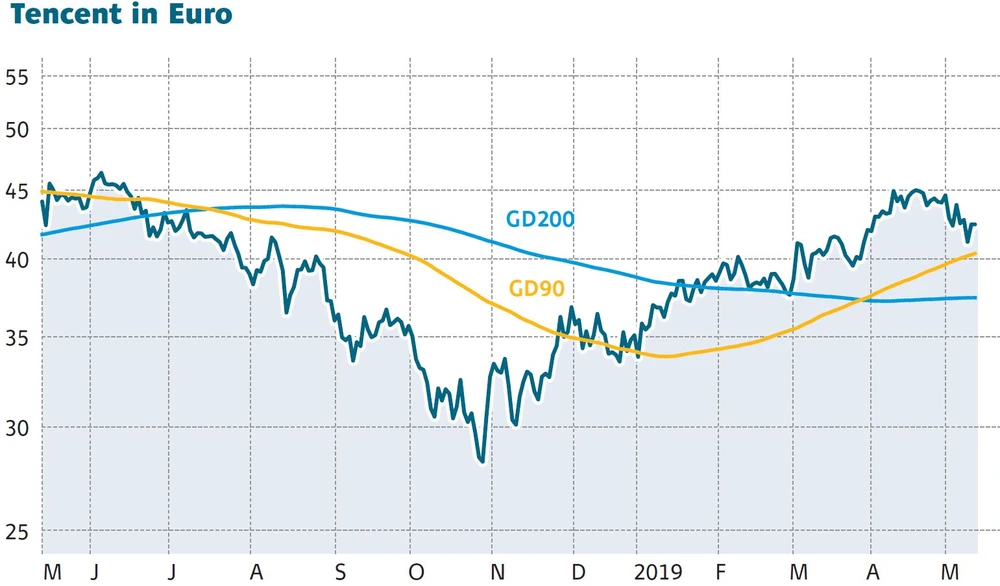 Von Tencent erwarten Analysten im ersten Quartal ein Umsatzwachstum von 21 Prozent auf 88,6 Milliarden Yuan. Der Gewinn je Aktie soll bei 2,16 Yuan liegen.