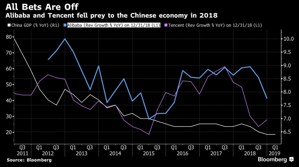 Das schwächelnde Wirtschaftswachstum in China hat in der Vergangenheit bereits Auswirkungen auf Alibaba und Tencent gezeigt. Im vergangenen Jahr gingen mit dem Ausbruch des Handelsstreits die Wachstumsraten der Tech-Giganten bereits deutlich zurück.