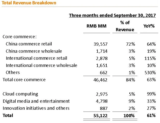 Die stärksten Zuwächse erzielte das wichtige Cloud-Segment: Der Umsatz stieg um unglaubliche 99 Prozent auf 447 Millionen Dollar. Hohe Investitionen in die Entwicklung neuer Produkte treiben die Cloud-Sparte an. Alibabas Top-Priorität: Dieses Zukunftsgeschäft ausbauen.
