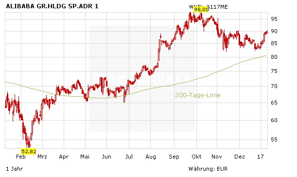 Alibabas internationale Strategie ist größtenteils darauf ausgerichtet, der chinesischen Mittelschicht westliche Marken anzubieten. Sollte sich Trump mit China anlegen, wäre diese Strategie am Ende. Mit dem Besuch des „inoffiziellen Chefdiplomaten“ Jack Ma kehrt jetzt Entspannung ein. Auch der Kurs der Alibaba-Aktie erholt sich im Januar und legt knapp zehn Prozent zu. Auch im neuen Jahr bleibt Alibaba ein Kauf.