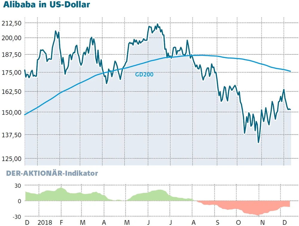 Die Alibaba-Aktie ist für Mizuho ein Kauf mit Kursziel 200 Dollar, was rund 32 Prozent Kurspotenzial entsprechen würde. Baidu bekommt ebenfalls den Kauf-Stempel aufgedrückt, Kursziel 220 Dollar und damit 22 Prozent Kurspotenzial.