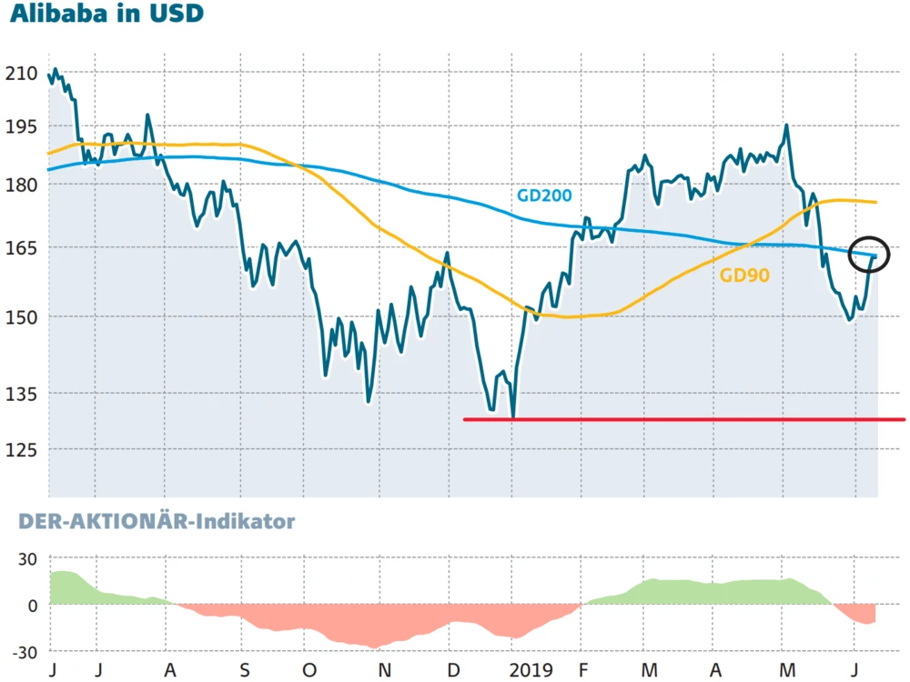 Neueste Meldungen rund um den möglichen Einstieg in den russischen Markt helfen dem Kurs offensichtlich wieder auf die Sprünge. Die Alibaba-Aktie startete stark in die Handelswoche und konnte im Rahmen eines freundlicheren Marktumfeldes am vergangenen Handelstag die sehr wichtige 200-Tage-Linie bei 165,65 US-Dollar punktgenau zurückerobern. Wie sollten Anleger sich nun positionieren?