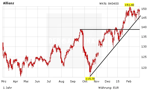 DER AKTIONÄR bleibt für die Aktie der Allianz nach wie vor positiv gestimmt und rät weiterhin zum Kauf. Die Aktie ist immer noch günstig bewertet und ist auch aus charttechnischer Sicht attraktiv. Der DAX-Titel bleibt ein Kauf, der Stopp sollte bei 119 Euro belassen werden.