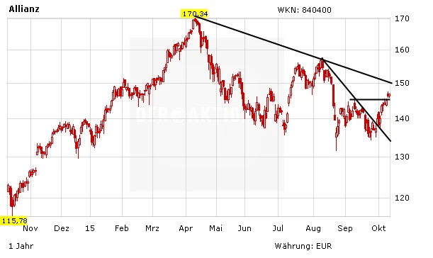 Die Aktie der Allianz konnte sich zuletzt weiter erholen und sich allmählich wieder der Marke von 150 Euro angenähern. Doch damit sind die Anteilscheine des Münchner Versicherungsriesen nach Ansicht der Experten der Commerzbank immer noch eindeutig zu niedrig bewertet. Sie raten daher weiter zum Einstieg.