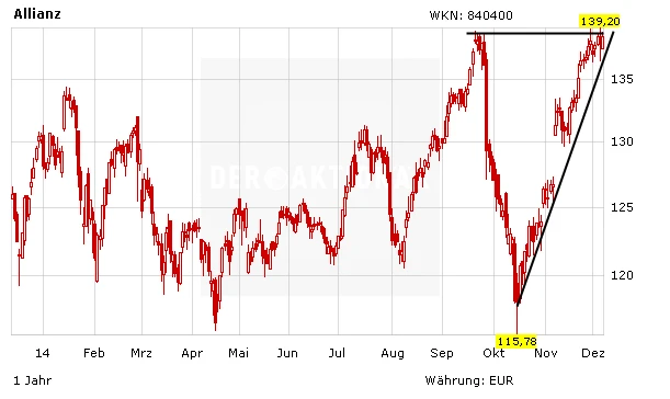 DER AKTIONÄR ist bei der Allianz-Aktie klar auf Seiten der Bullen. Es gibt einen sehr guten Grund, warum der Titel weiter steigen wird: die Dividendenrendite von fünf Prozent. Zum Vergleich: 10-jährige Bundesanleihen kommen aktuell auf eine Rendite von 0,7 Prozent, Tagesgeld und Sparbuch liegen ebenfalls meistens unter einem Prozent. Eine Dividendenrendite wie die der Allianz ist verlockend für alle, die einen Ausweg aus der Zinsfalle suchen. Und das werden immer mehr. DER AKTIONÄR bleibt bei seinem Kursziel von 150 Euro, der Stopp sollte bei 110 Euro gesetzt werden.