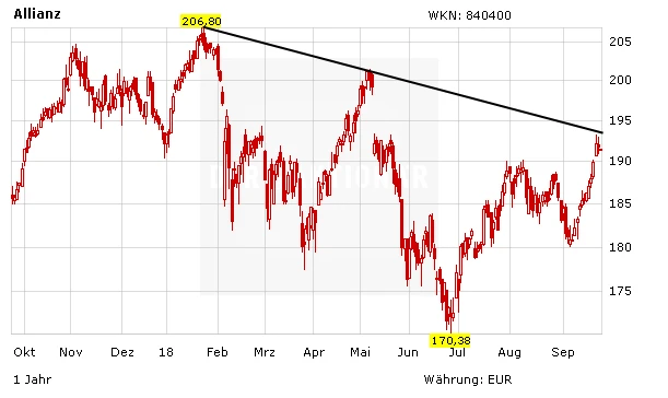 Die Fehltritte in Australien sollten der Allianz insgesamt nichts anhaben können. Der Konzern ist sehr gut kapitalisiert und verfügt über eine starke Bilanz. Die Aktie hat charttechnisch zuletzt einiges an Boden gut gemacht und steht kurz vor dem Sprung über den Abwärtstrend. Auch fundamental ist das Papier mit einem KGV von 11 und einer Dividendenrendite von 4,2 Prozent nicht zu teuer.