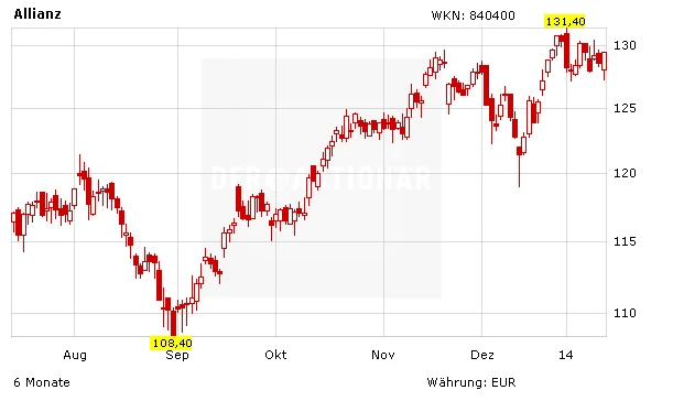 Nun haben auch die Experten der Credit Suisse ihre Einschätzung nach oben korrigiert. Sie bewerten die Aktie nun mit „Outperform“ nach zuvor „Neutral“. Auch DER AKTIONÄR rät bei der Allianz-Aktie nach wie vor klar zum Kauf (Stopp: 102,00 Euro). Die Anteile des Versicherungsriesen sind mit einem KGV von 10 und einer Dividendenrendite von knapp vier Prozent immer noch eines der letzten Schnäppchen im DAX. Auch aus charttechnischer Sicht sieht es weiterhin bestens aus.