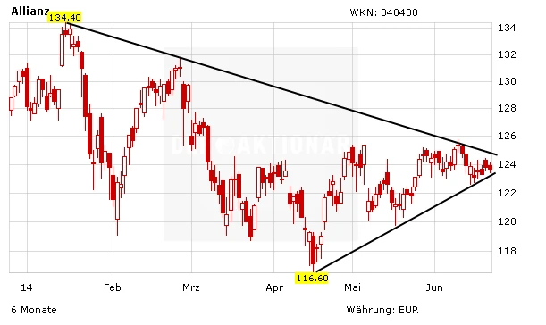 DER AKTIONÄR bleibt optimistisch für die weitere Entwicklung des Konzerns. Die Allianz-Aktie ist mit einem KGV von 9 für 2014 noch immer günstig bewertet. Auch aus charttechnischer Sicht bleibt der Wert interessant. Gelingt der Sprung über die 125 Euro ist der Weg bis in den Bereich von 134 Euro frei. Ein Stopp bei 115 Euro sichert die Position nach unten ab.