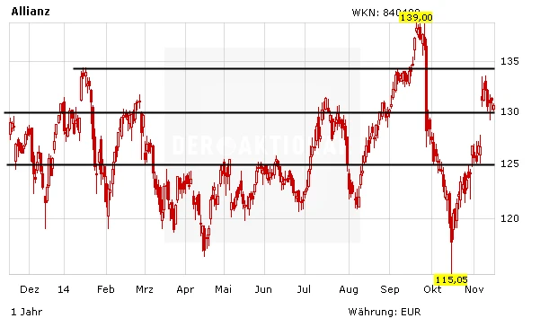 Aus charttechnischer Sicht notiert die Allianz-Aktie aktuell über der Unterstützung bei 130 Euro. Sollte diese halten, wäre ein Angriff auf das 6-Jahres-Hoch bei 138,90 noch in diesem Jahr denkbar. Vorher muss die Aktie aber den Widerstand bei 133,55 Euro überwinden.