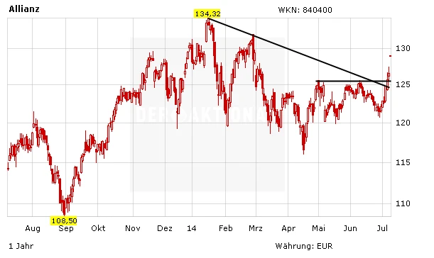 Auch DER AKTIONÄR bleibt für die Aktie der Allianz zuversichtlich gestimmt: Die nach wie vor günstig bewertete Aktie der Allianz bleibt weiterhin attraktiv. Auch charttechnisch betrachtet sieht es derzeit gut aus. Anleger, die sich die DAX-Titel in ihr Depot gelegt haben, sollten den Stoppkurs bei 115,00 Euro setzen.