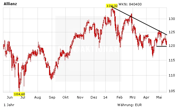 DER AKTIONÄR bleibt für die Aktie der Allianz zuversichtlich gestimmt. Der Konzern ist gut aufgestellt und verfügt über eine solide Bilanz. Zudem ist die Bewertung günstig. Wichtig wäre nun, dass die Unterstützung bei 120 Euro hält. Investierte Anleger beachten den nachgezogenen Stopp bei 115,00 Euro.