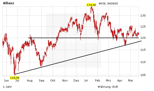 DER AKTIONÄR ist optimistisch für die weitere Kursentwicklung von Allianz. Der Konzern ist gut aufgestellt und verfügt über eine solide Bilanz. Zudem ist die Bewertung mit einem KGV von 9 günstig. Investierte Anleger Sichern ihre Position mit einem Stopp bei 115 Euro ab.